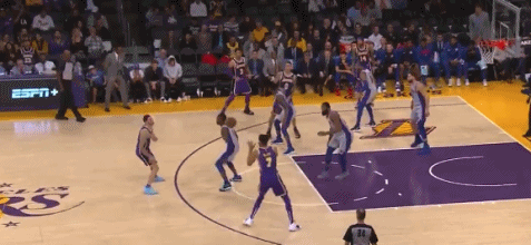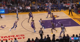 易边再战,雷吉-杰克逊三分命中,双方分差缩小到了5分,但很快库兹马内突外投,一个10-2的小高潮,帮助湖人重新确立两位数的领先优势。到第三节还有1分14秒的时候,湖人已经领先对手16分。之后,加洛韦上场,连续命中两记三分缩小分差,但第三节结束,湖人队依旧89-77领先。