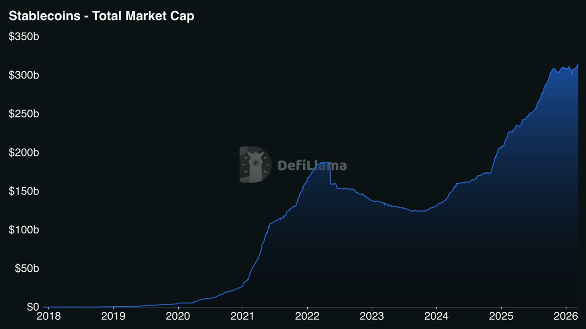 在加密货币市场中,资金流动往往被视为牛市信号。 Defillama数据显示,过去一周稳定币总市值大幅增长30.73亿美元,创下历史新高3149亿美元。这是自2025年10月以来最显著的一次增长。然而,与稳定币资金持续流入形成对比的是,作为市场核心资产的比特币却始终在7万美元附近反复震荡。 资金在增长,价格却没有同步突破,这一背离现象正在成为近期市场讨论的焦点。 稳定币向全球支付结算基础设施转化从资金结构的角度来看,稳定币规模的上升并不必然意味着风险资产立即上涨。 当前稳定币的增长,更像是“资金进入加密体系”的第一阶段,而非直接进入交易市场的最终阶段。市场参与者通常会先将资金转化为稳定币,随后再根据宏观环境与价格趋势逐步配置风险资产。因此,稳定币市值扩张往往领先于行情启动,形成一种典型的“流动性前置”结构。 稳定币龙头发行方中,Tether发行的USDT以及Circle发行的USDC依然是主要增量来源。稳定币供应增加通常意味着两种情况:一是交易平台资金储备增加,二是机构准备进入市场但尚未完成资产配置。换言之,稳定币的扩张更多反映的是潜在购买力,而非即时买盘。 此外,数据显示,USDC近期的增长速度超过了USDT,这很可能是受监管政策明朗化的影响。Circle CEO Allaire在今年的财报电话会上透露,BTC和稳定币之间正在脱钩。这背后本质是越来越多的新增稳定币供应正流入RWA协议。而稳定币也正在从加密交易的计价单位,变成全球支付的结算基础设施。 宏观不确定性压制风险偏好尽管资金规模正在增长,但比特币价格却始终难以突破关键区间,,很大程度上与宏观经济不确定性和地缘ZZ风险共同作用的结果。 过去两年,比特币的定价逻辑逐渐与传统金融市场深度绑定。美国利率政策、美元流动性以及全球风险资产偏好,都会直接影响资金进入加密市场的节奏。在利率路径尚未明确的背景下,机构资金普遍保持谨慎,这导致大量资金以稳定币形式“停泊”,等待更清晰的宏观信号。 中东冲突尤其是伊朗战争和霍尔木兹海峡的紧张局势,导致石油价格飙升至90美元/桶以上 。这强化了美元汇率,并推高债券收益率,对风险资产如比特币形成明显压制。投资者在油价波动中选择避险,比特币作为“高贝塔”资产,在冲突升级时迅速回落至65,000美元低点 。尽管特朗普总统暗示战争可能“很快结束” ,但不确定性仍令市场谨慎。 ETF影响价格节奏另一个重要变量来自机构资金结构的变化。自现货ETF推出以来,市场的定价机制已经发生明显变化。机构资金对比特币的配置更具结构性,而非传统加密市场中的情绪驱动式买入。 在ETF资金流入阶段,比特币价格往往呈现趋势上涨;而当资金流入放缓时,市场则更容易进入横盘震荡区间。在当前阶段,机构资金并未完全离场,但边际买盘不足,导致价格在关键区间反复拉锯。 另外,从技术结构来看,7万美元附近正处于重要的心理与流动性密集区。一方面,该区域接近上一轮周期中的关键筹码区间,大量长期持有者在此附近存在兑现需求;另一方面,衍生品市场的杠杆仓位也在这一价格带高度集中。现货买盘与衍生品多空博弈叠加,使得价格短期难以形成单边突破。 值得注意的是,稳定币增长与价格滞涨之间的组合,往往在历史周期中出现于行情启动前的“蓄水阶段”。在这一阶段,市场资金正在累积,但尚未形成共识叙事。一旦宏观环境出现催化,例如利率下降、ETF资金重新加速流入或新的产业叙事出现,沉淀在稳定币中的流动性便可能迅速转化为风险资产买盘。 从更宏观的角度看,稳定币规模持续创下新高,实际上反映了加密金融体系的底层扩张。稳定币正在逐渐成为全球数字美元的基础设施,其应用场景不仅局限于交易,还延伸至跨境结算、DeFi抵押以及链上支付。随着这一体系规模扩大,加密市场的流动性池也在不断增长。 因此,比特币在7万美元附近的徘徊,并不一定意味着行情的终结,反而更可能是流动性重新积累的阶段。当稳定币供应持续上升,而宏观流动性条件逐步改善时,市场往往会迎来新的趋势性突破。 换句话说,当前市场真正的问题并不是“资金是否存在”,而是“资金何时转化为风险偏好”。在稳定币规模创历史新高的背景下,这一答案可能取决于下一次宏观信号的出现。